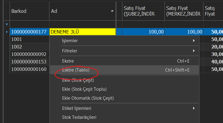 Faturası girilmiş ürünlerde hatayı tespit etmenin en iyi yolu stok ekstresini kontrol etmektir. Örneğin alış fiyatı veya miktarı yanlış girilmiş bir üründe kar zarar yanlış hesaplanacaktır. Bu hatanın nerden kaynaklandığını en rahat bu ekrandan görebilirsiniz. Stok ekranında hangi stokta kar zarar yanlış hesaplandığını düşünüyorsanız o stoğun üstüne gelin ve sağ tuşa basın.