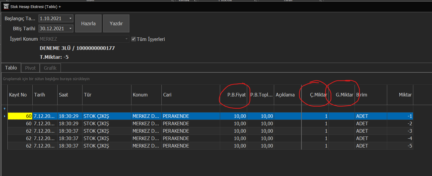 Eğer eksi miktarlı ürünler varsa program hesap yapamaz en azından alış fiyatı girişmiş olması gerekmektedir.